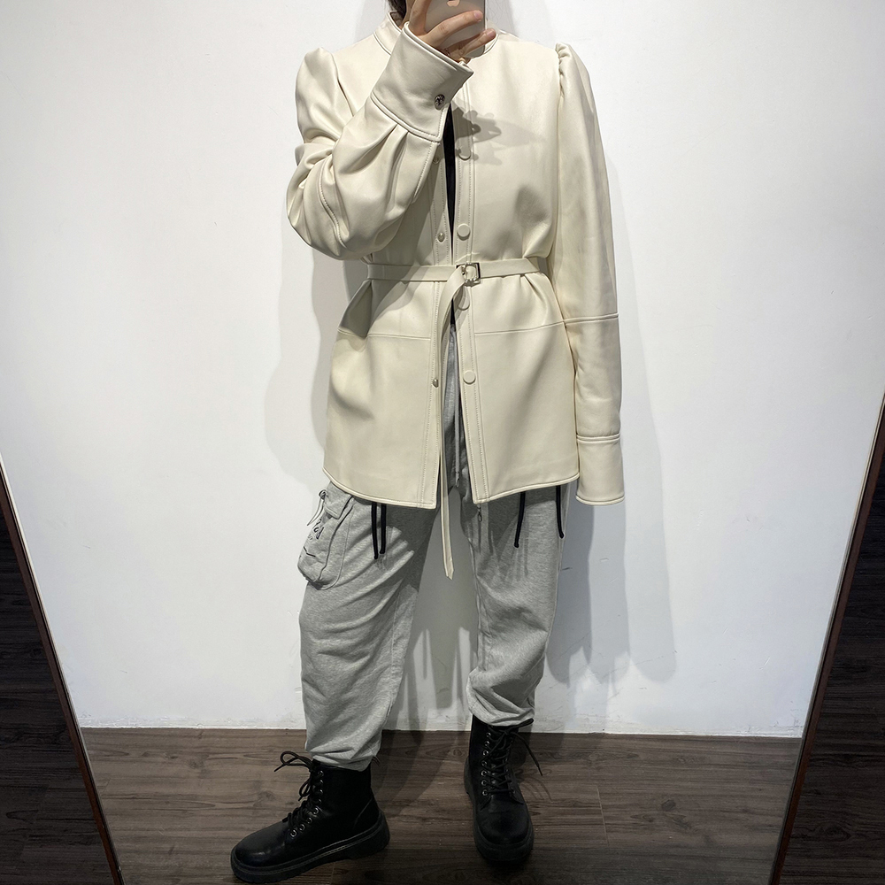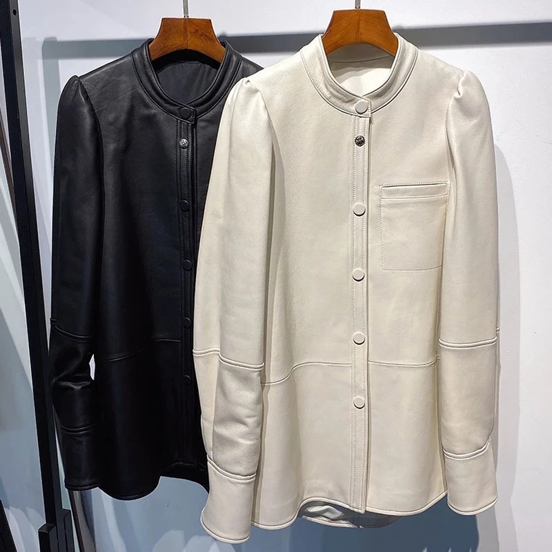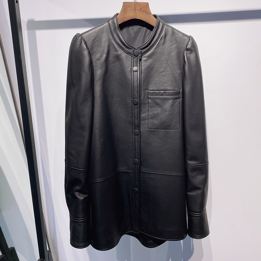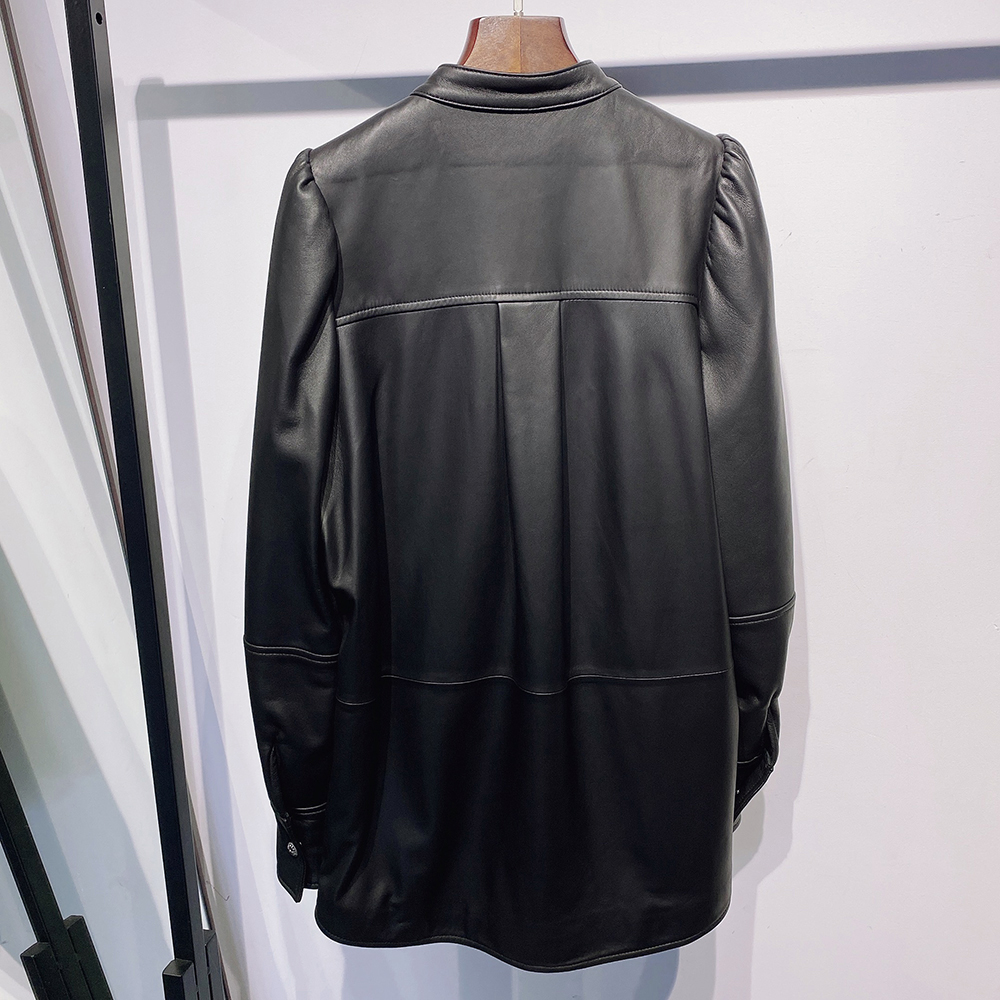 Autumn New Oversized Women Single Breasted Leather Shirt Blouse Real Leather Jacket For Ladies