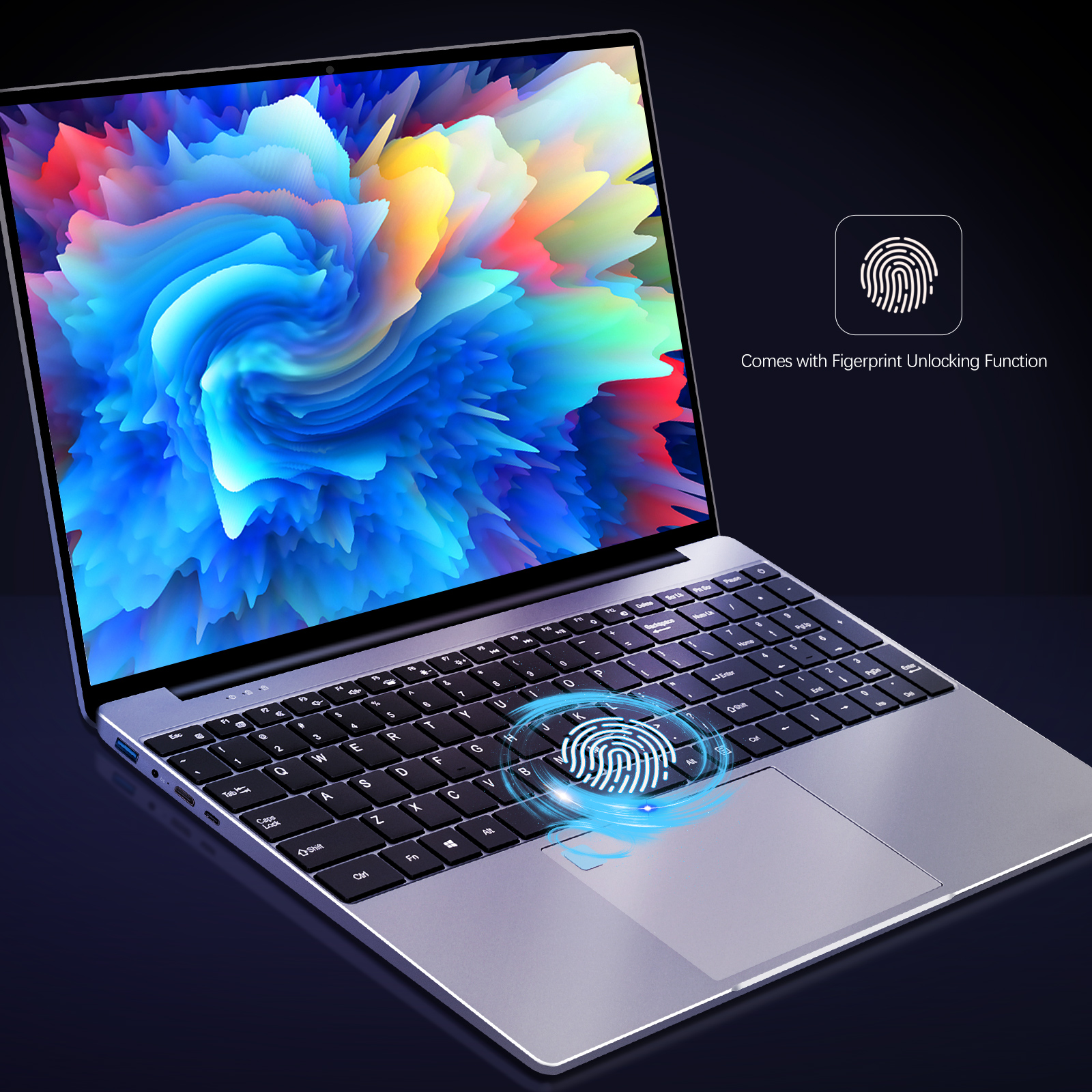 7. Large size touch pad with fingerprint unlock.