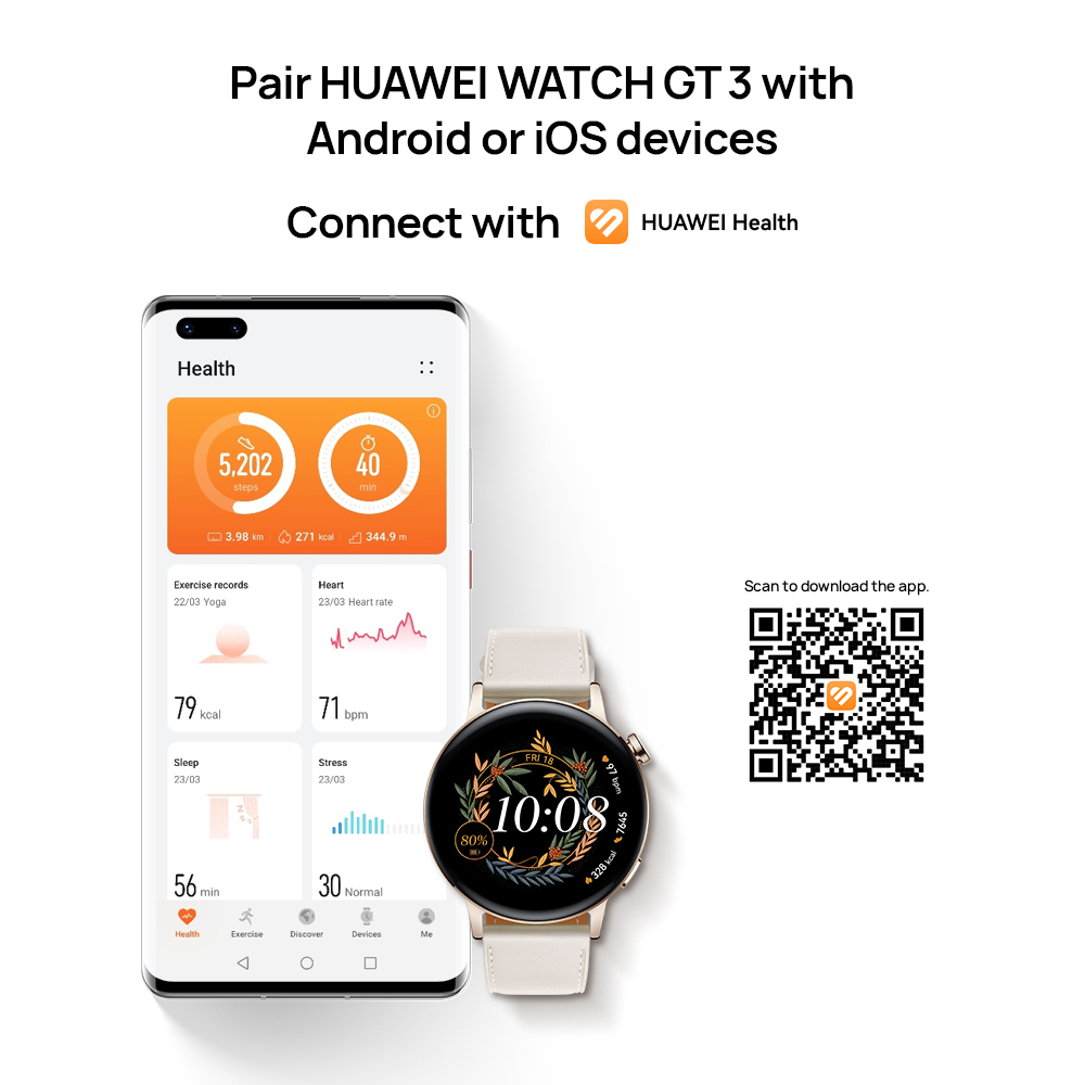 【Personal AI Running Coach】The HUAWEIWATCH GT 3 smartwatch can assess your athletic ability based on your historicalrunning data, and provide you with a scientific and professional running planfor your daily running and race preparation, whether you are a beginner or anadvanced runner, and provide you with full tracking guidance.