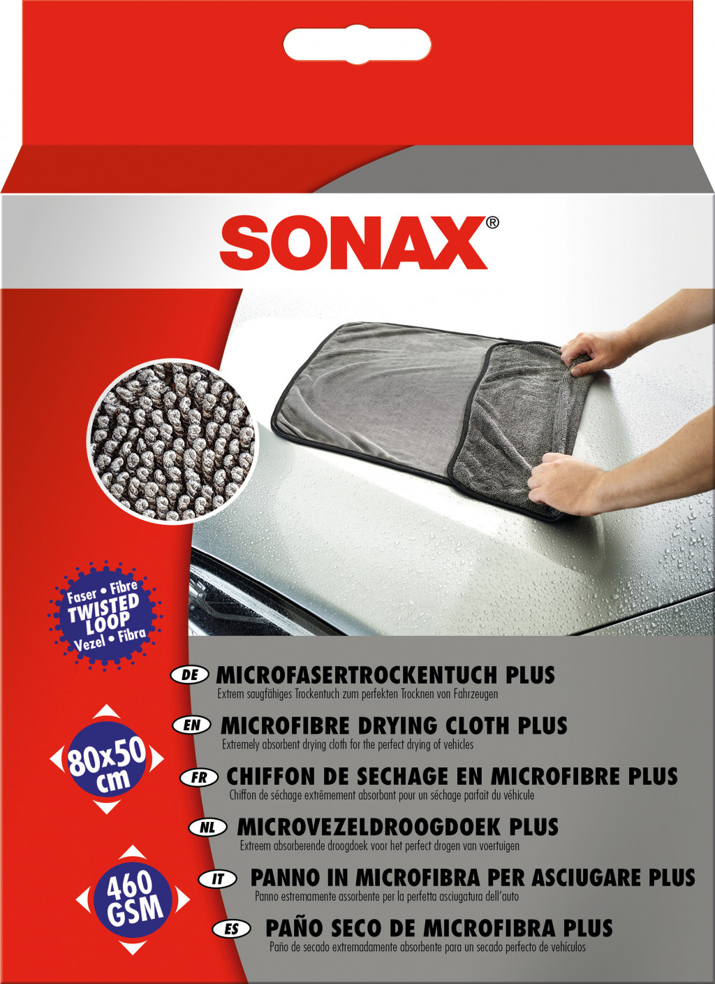SONAX Microfibre Drying Cloth Plus for perfect drying of vehicles.