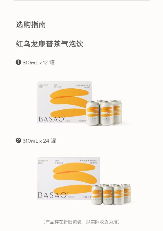 BASAO Baishuo red oolong black oolong Kombucha bubble drinks carbonated drinks bubble water 310ml/1 can.