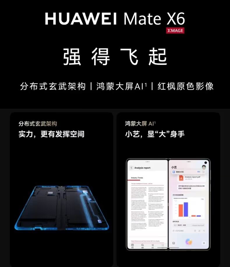 HUAWEI Huawei Mate X6 Distributed Xuanwu Architecture HarmonyOS Big Screen AI Hongfeng Primary Color Image Huawei Folding Screen Mobile Phone 2127