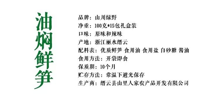 Jinyun Mountain Sichuan Lvye Braised Bamboo Shoots 100g15 Pack