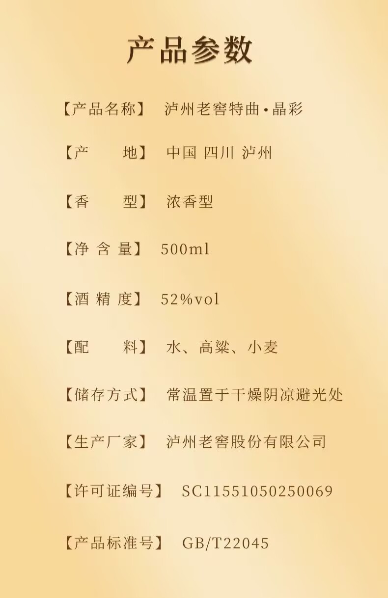 Luzhou Laojiao Tequ 52-degree 500ml2 bottles of crystal-colored Luzhou-flavor liquor
