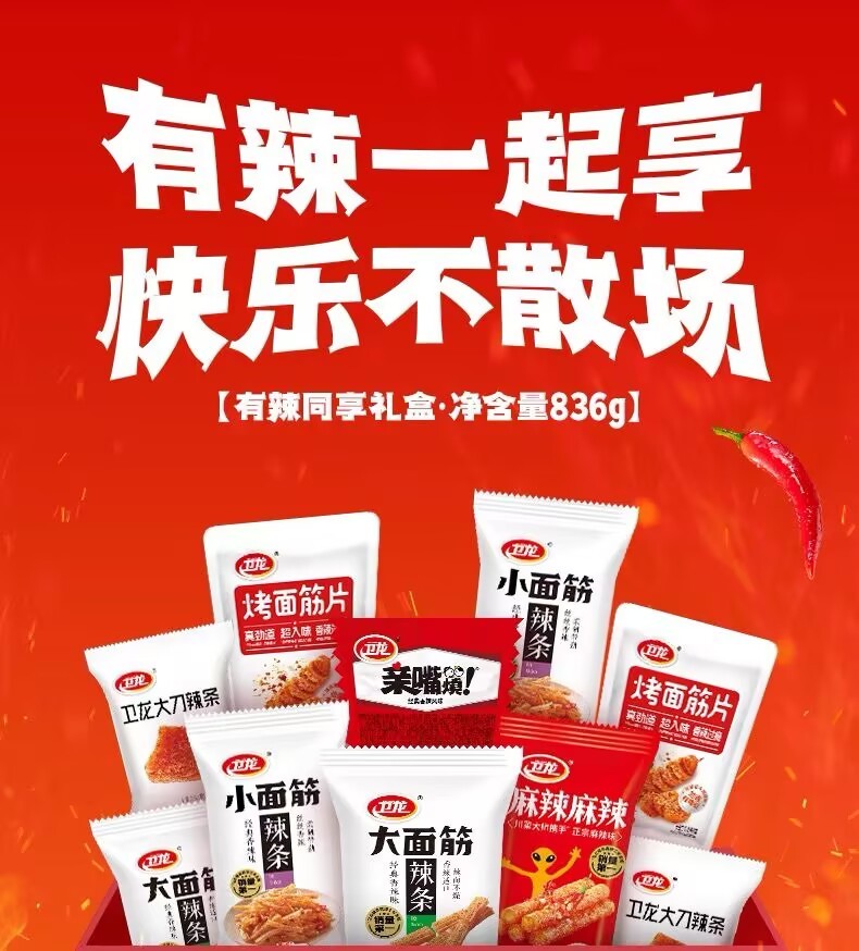 Weilong has spicy and spicy strips gift box 836g*1 box of spicy strips