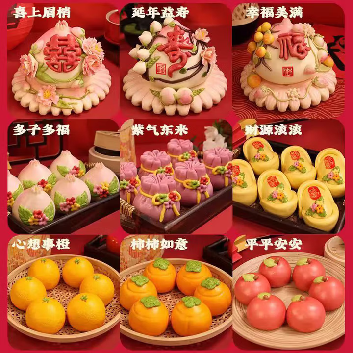 Youshanfang Flour Steamed Bun Gift Box - Shandong Specialty Decorative Noodles and Pastries - Celebration Gifts and Souvenirs - 'Our Family is Joyful' 54-Piece Set